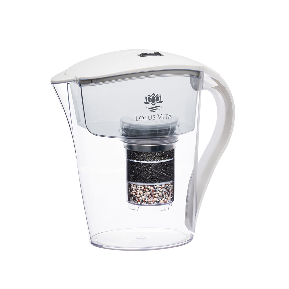 Die exklusiv von LOTUS VITA entwickelte PiVitalis® Wasserfilter-Technologie macht Ihr Wasser wohlschmeckend, reduziert Kalkablagerungen in Haushaltsgeräten wie Kaffeemaschinen und Wasserkochern und verlängert somit deren Lebensdauer und Leistungsfähigkeit. Schwermetalle wie Blei und Kupfer, ferner Schadstoffe wie Uran und Chlor werden effizient aus dem Wasser gefiltert. Die sehr gute Verarbeitung der Filterkanne Family stellt sicher, dass die Kanne den Anforderungen des täglichen Gebrauchs standhält.