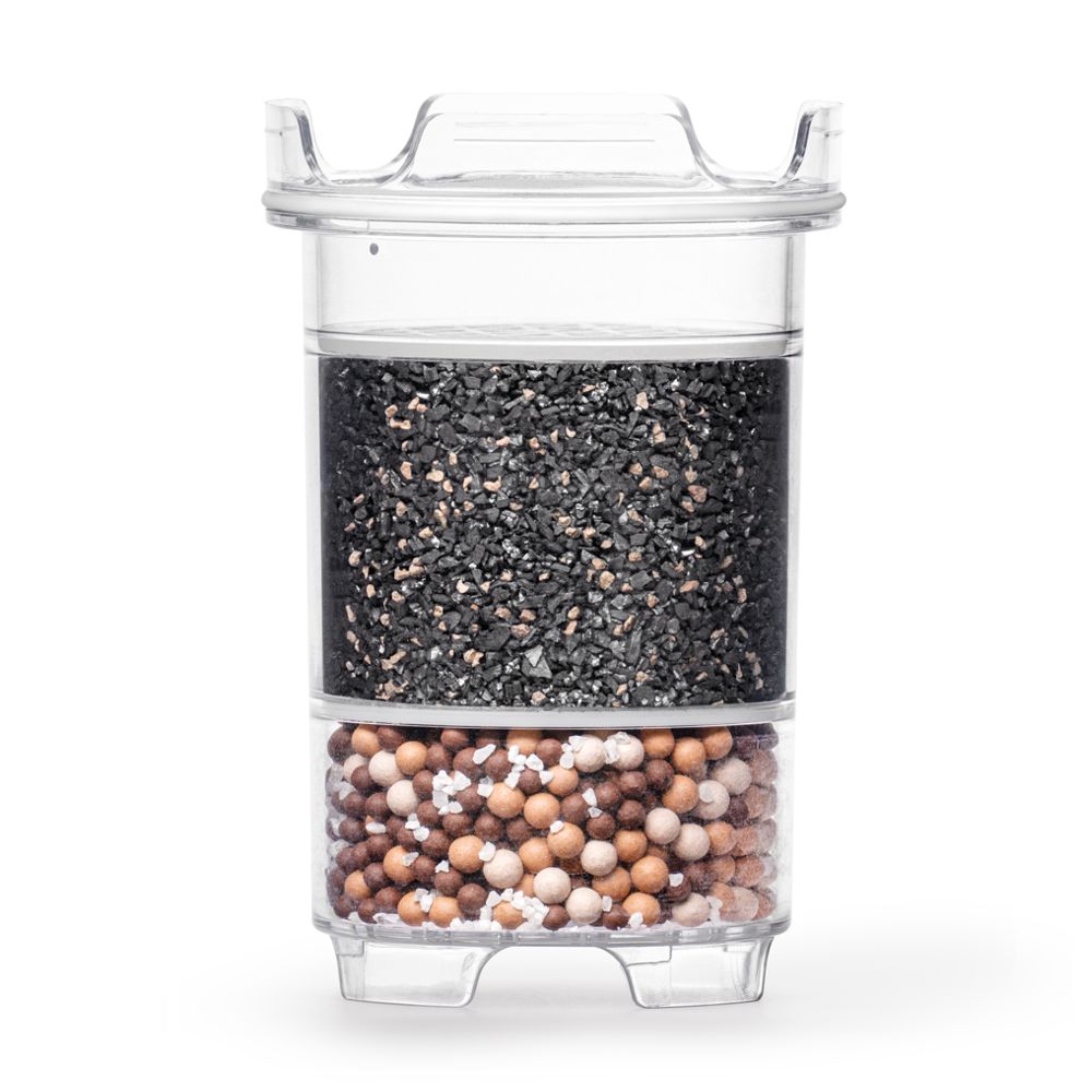 Die Kombination aus Aktivkohle, Zeolith und Kalium-Ionentauscher entfernt zuverlässig Mikroplastik, Schadstoffe und Kalk, während die PiVitalis Mineralkeramiken das Wasser sanft mineralisieren und seine natürliche Frische bewahren.
