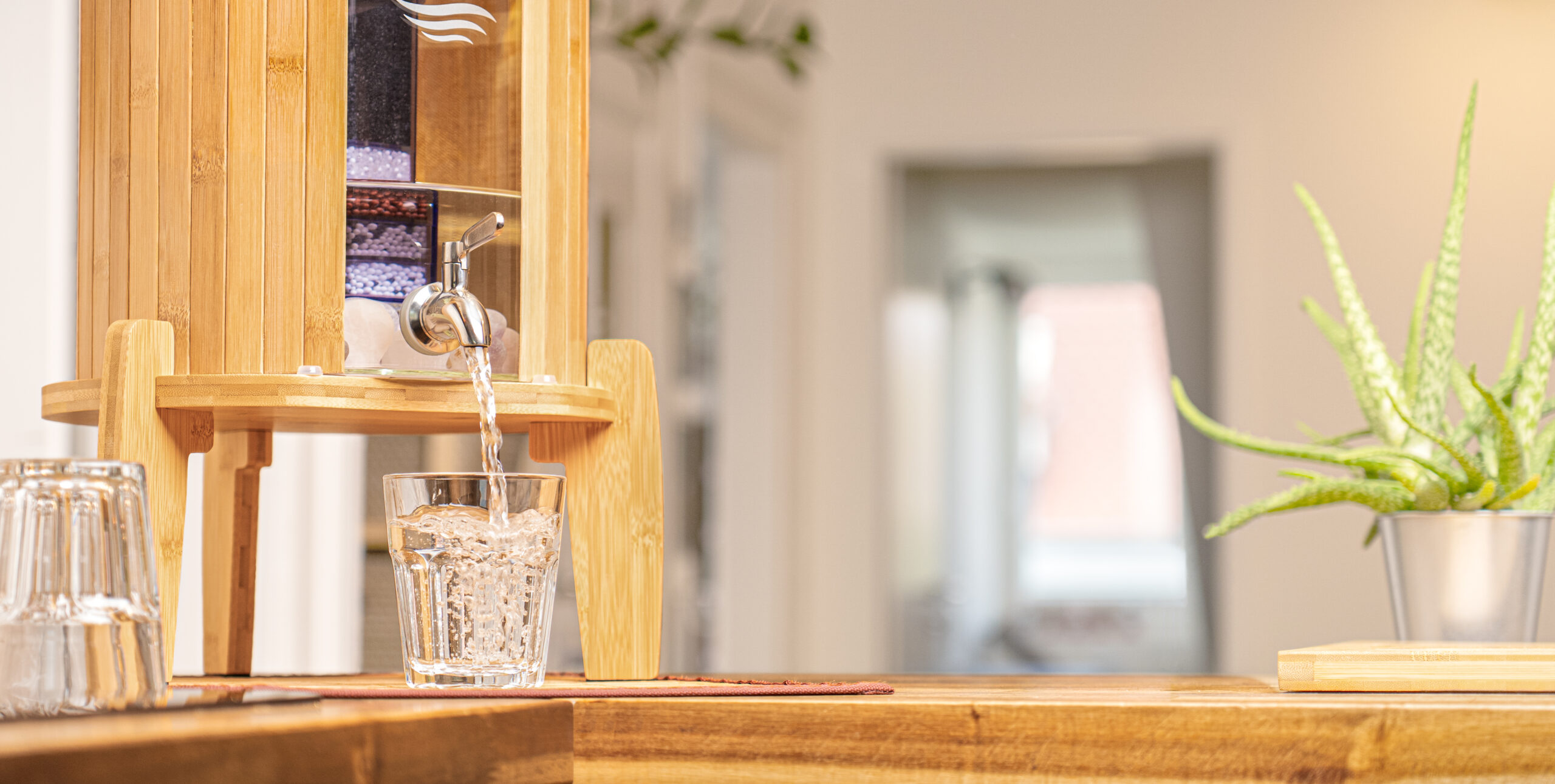 Die Standfilter von LOTUS VITA werden ohne Strom- und Wasseranschluss aufgestellt. An dem Ort Ihrer Wahl. Das Fassungsvermögen beträgt 4 bis 9 Liter.
